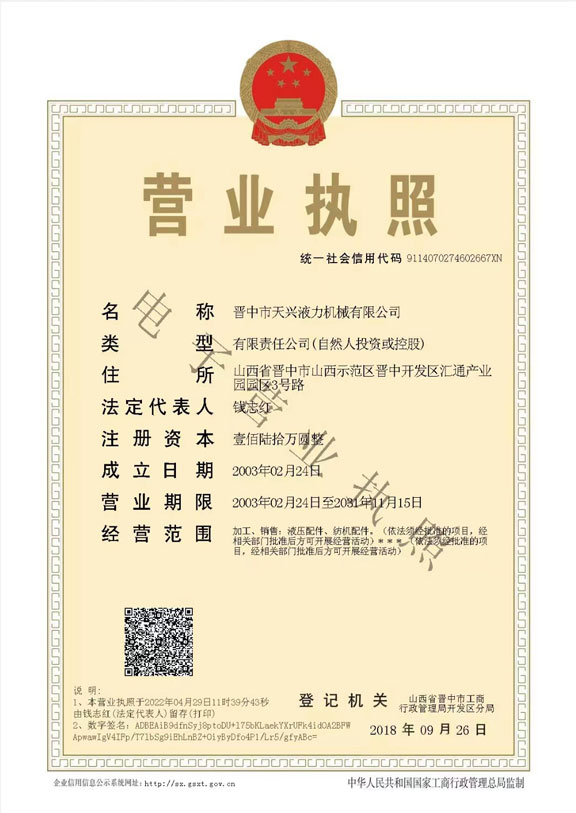 - 晉中市天興液力機(jī)械有限公司成立于2003年,位于液壓產(chǎn)業(yè)基地山西省榆次區(qū),憑借成熟的市場(chǎng)運(yùn)營和完善的技術(shù)工藝,逐步的形成了較好的工作品質(zhì)和產(chǎn)品品質(zhì),成為了眾多液壓系統(tǒng)配套企業(yè)的合作伙伴,同時(shí)獲得了主機(jī)制造企業(yè)的眾多認(rèn)可。